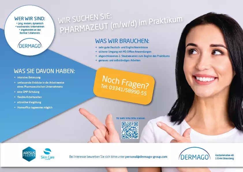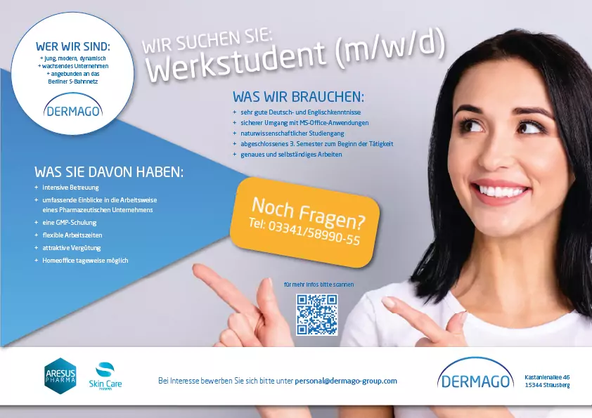 Bei Interesse bewerben Sie sich bitte unter personal@dermago-group.com